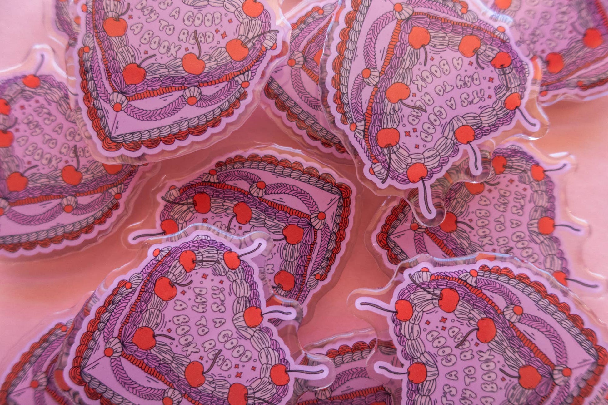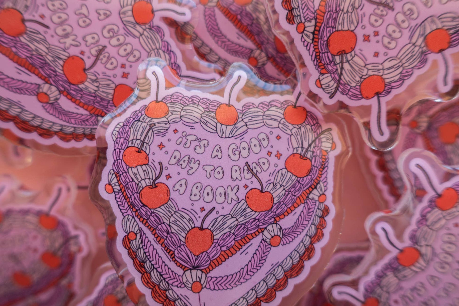 A cute little cake that reads "It's a Good Day to Read a Book"